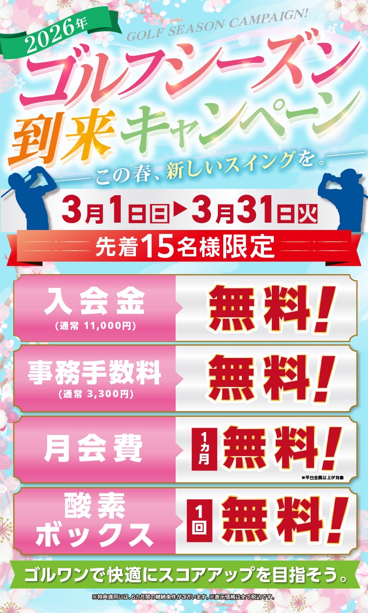 | ゴルワン | インドアゴルフ スクールA社 | 屋外ゴルフ 練習場B社 | |