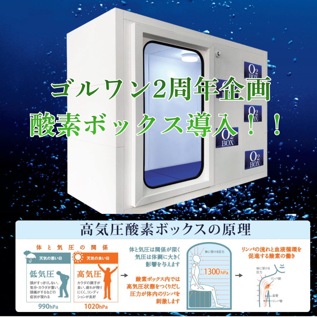 この度、ゴルワン2周年を記念して『酸素ボックス』を導入いたしました!